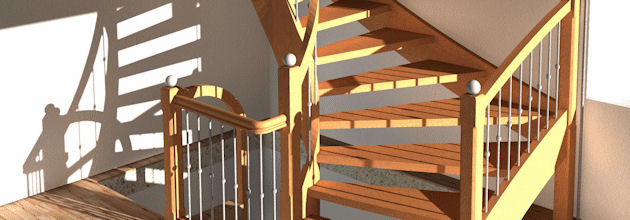 - generación automática de las huellas, contrahuellas, pasamanos y balaustres, y zancas